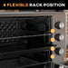 Four secure rack positions included for versatile cooking placements