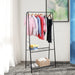 No more crumpled clothes or cluttered floors! Enjoy the convenience of a spacious top hanging rail that allows your garments to hang freely, coupled with two generous lower wire shelves that are ideal for organizing your shoes or storage boxes. This space-efficient rack brings order to chaos and creates a visually appealing display of your belongings.