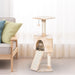 Adorn your space with its neutral beige palette; our cat tree is a seamless addition to any home décor. The sturdy construction combines particle board, sisal ropes, and plush materials for lasting enjoyment. Specific dimensions include a 35 cm wide, 25 cm tall condo, a welcoming condo door sizing 22 cm by 20 cm, and a gentle ramp measuring 38 cm in length and 17 cm in width. Each scratching post is built with Ф5.5 cm thickness for resistance against the most determined claws.