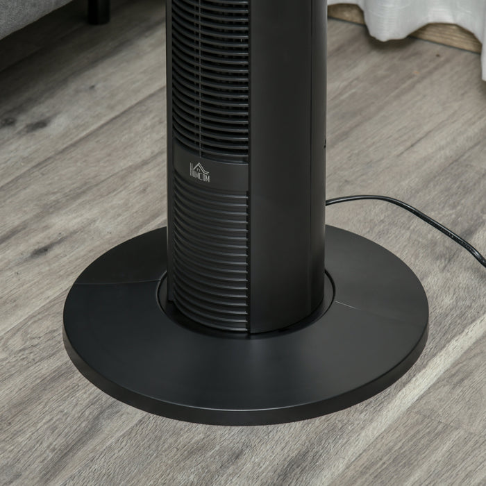Boasting an overall dimension of 96H x Ф31.5cm, our tower fan's tall and slender form allows it to fit snugly in tight corners or alongside furniture – a perfect blend of function and style. Despite its lightweight build, the durable plastic body promises long-lasting performance.
