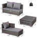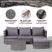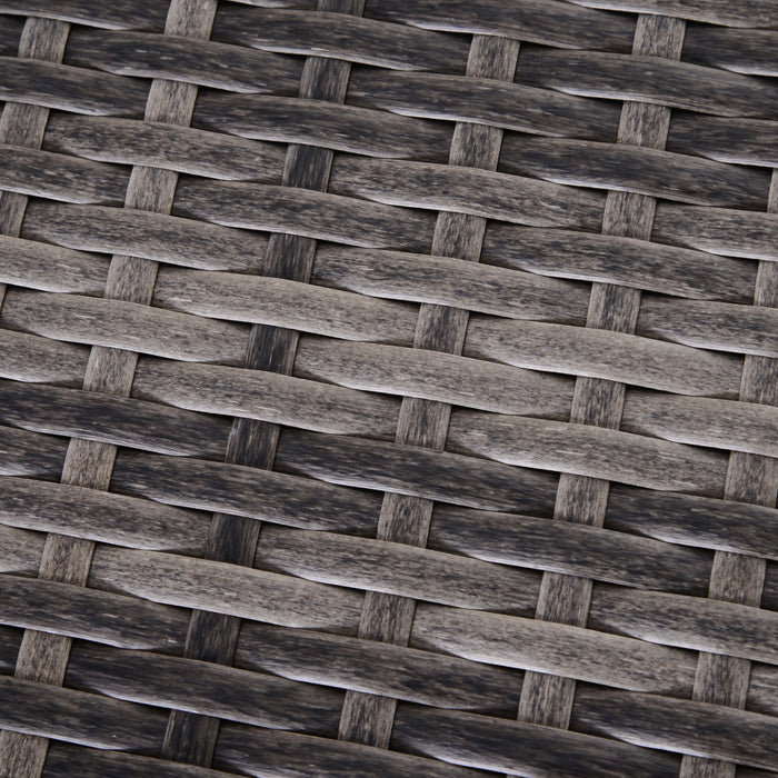 The foundation of this stunning set is its robust metal framing, meticulously wrapped in high-quality PE wicker rattan. This not only ensures a strong and enduring base but also adds an aesthetic touch with its contemporary mixed grey tones. Each piece is crafted to withstand the elements, offering UV resistance and a high degree of resilience against light water damage, maintaining its beauty throughout diverse weather conditions. The easy-to-clean surfaces promise low maintenance for a pristine look year-round.