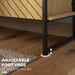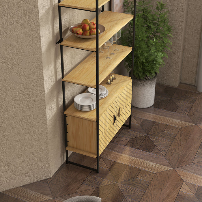 Vibrant yet refined, the oak tone finish pairs exquisitely with the bold black framework. Construction using premium particleboard and metal illustrates a commitment to durability and style. The intelligent design ensures each shelf and the cabinet contribute to a harmonious blend of form and function.