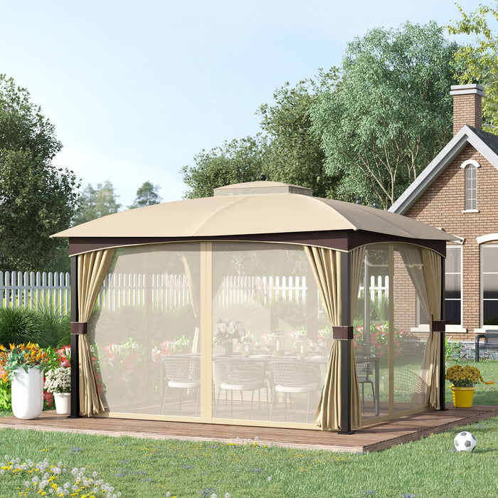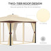 With a serene blend of Khaki and Brown hues, this gazebo complements any existing outdoor decor, while the sturdy metal, UV protective polyester cloth, and breathable mesh fabric construction offer both beauty and functionality. Whether by the poolside, on the lawn or garden, our garden pavilion stands ready to elevate your outdoor living experience.
