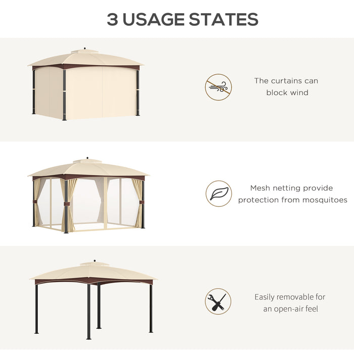 Enclosed with luxurious polyester curtains, the gazebo offers you the flexibility to create an intimate enclosure or an inviting open space, according to your needs. The fine mesh netting complements this feature by acting as a protective barrier against insects, ensuring your time outdoors is not only private but also undisturbed. When not needed, the curtains can be easily tied back to the gazebo frame, maintaining the unit's sleek appearance.