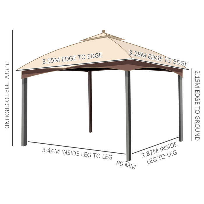 With an expansive area of 3.95L x 3.28W x 3.33H meters, this gazebo provides a considerable space for furniture and guests, all while fitting elegantly into your selected outdoor area. The thoughtful design also includes a comfortable eave height of 2.15 meters and a generous column spacing of 3.44L x 2.87W meters. Note, while assembly is needed, the transformative effect on your space is more than worth the effort.