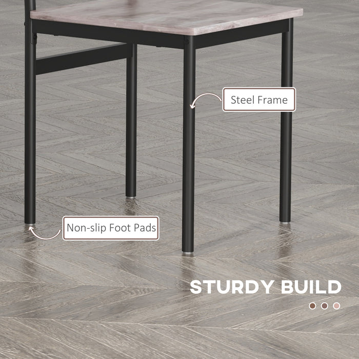 Boasting a chic grey wood-effect finish, the table top and seats invite an element of urban flair into your home. The striking black frames not only add a bold contrast that captures attention but also ensure that this dining set becomes the centerpiece in any room. Whether you're hosting a casual brunch or an intimate dinner, this dining set's minimalist design is easily dressed up with a splash of vibrant color for any occasion.