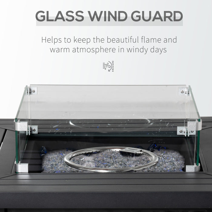 Unwind without the worry of wind disrupting your serene retreat. Our fire table is equipped with a glass wind guard that not only provides protection but also enhances the flickering flames' visual allure with included glass beads, adding a touch of luxury to your outdoor oasis.