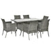 Transform your patio or garden into a delightful dining escape with our exquisite seven-piece rattan ensemble, featuring a sleek table and six inviting chairs designed for comfort, elegance, and durability. Revel in the charm and sophistication that this set brings to your outdoor gatherings, providing the perfect blend of style and function.