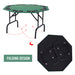 The table's playing surface is covered in a smooth green cloth that emulates a professional dealer's table, enhancing the overall playing experience. Its solid construction is supported by steel legs, ensuring a stable and reliable gameplay surface.