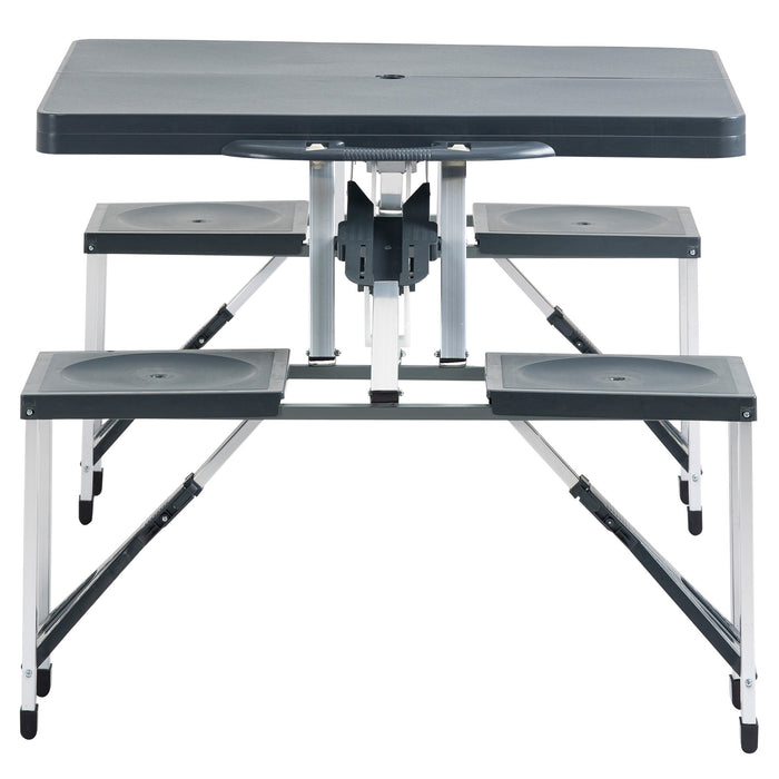 Crafted from advanced lightweight aluminum and outfitted with a sturdy plastic surface, this picnic set promises superior strength without the burden of heaviness. This blend of materials ensures longevity, offering a reliable and easy-to-clean surface that’s ready for all your outdoor dining needs. Sit back and relax, knowing this set is built to last.