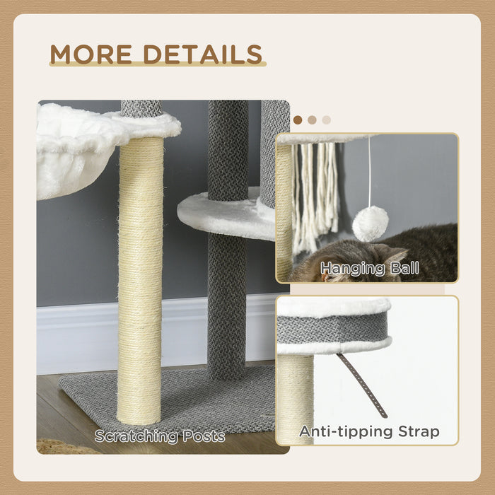 - Overall Size: 124cm in height, 59cm in width, and 40cm in depth. Variety in components such as a cosy cat house, a spacious bed, and ample play area.