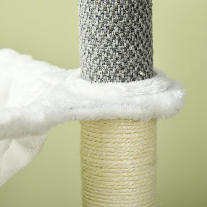 Introducing the PawHut Ultimate Feline Leisure Tower – a perfect playground for your furry friends. Say goodbye to damaged curtains and furniture, as this cat tower presents a world of fun and comfort for your pet. Imagine a place where your cats can lounge, play, and care for their claws – all in one stylish and modern design.