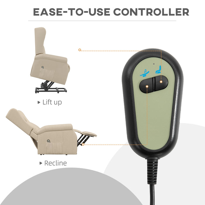 Whether upright or fully reclined, this chair's dimensions are designed to seamlessly integrate into your living space. Its beige color and stylish look make it a statement piece that enhances any room's aesthetic.