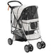 Every detail of this stroller caters to your pet's well-being. The zippered access points allow for hassle-free entry while ensuring a safe ride. The stroller is equipped with mesh windows for ample airflow and unobstructed views, creating an enjoyable environment for your pet. The adjustable canopy offers a secluded retreat and the attached safety leash provides added security. Emphasize your pet's safety with the included rear wheel foot brake, perfect for stationary moments, and reflective strips for heightened visibility during low-light conditions.