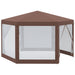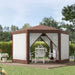 Accentuated in a rich coffee hue, the gazebo seamlessly integrates into any outdoor setting. Crafted from premium steel and polyester, it measures 340 cm from side to side with a side length of 195 cm. Rise to the pinnacle of outdoor hosting with our stylish yet functional party tent, culminating in the blissful convergence of form and function.