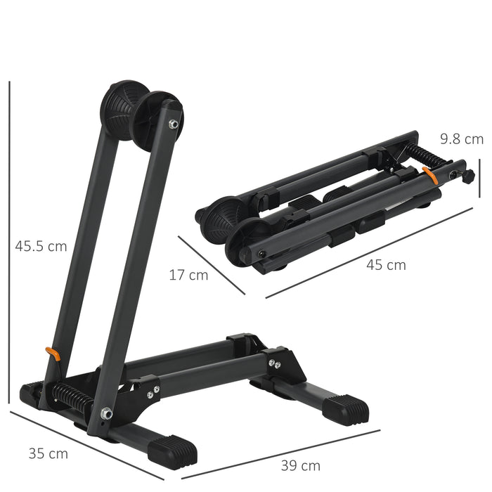 Discover the convenience of a sleek bicycle stand designed to support your bike's stability and storage needs. Featuring a robust metal frame, this bike holder guarantees a firm structure without any wobbling or movement, ensuring your bike is securely upright at all times.
