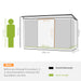 With overall dimensions of 280L x 130W x 158-172H cm and an interior measurement of 266L x 116W cm, this storage shed is designed to maximize space efficiency while maintaining a compact footprint. The door dimensions of 152H x 96L cm provide ample clearance for various item sizes.