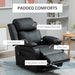 Boasting a supportive metal frame, our chair is both durable and stylish. It features a sophisticated faux leather finish that is as pleasing to the eye as the touch. Its thick padding ensures you're cocooned in comfort, while the side pockets offer convenient storage for remotes and other essentials. Plus, with wheels affixed to the base, repositioning is effortless.