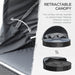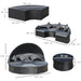 The retractable canopy positioned over the half-moon sofa provides a haven from the sun's glare. Operated with gas pressure mechanisms for effortless opening and closing, the UV-resistant fabric canopy offers shelter from harsh sunlight, gusty winds, and unexpected drizzles.