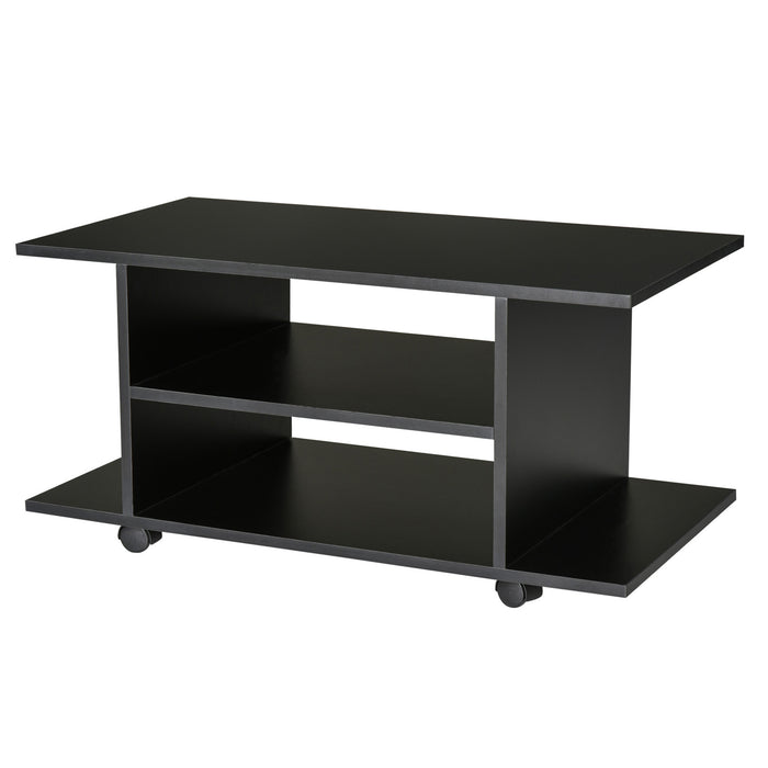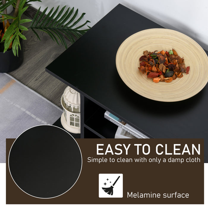 Constructed with superior quality particle board, the unit boasts a matt finish exterior that's not only visually appealing but also resistant to water and scratches, assuring longevity and ease of maintenance. The robust design does not compromise on space, featuring a spacious top surface and a two-tier open shelf below, perfect for various items, from media devices to decorative pieces.
