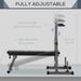 Staying fit at home is hassle-free with the weight bench's robust steel H-shaped base and an extra-thick cushioned backrest designed for maximum durability and stability. The bench boasts a solid construction that can handle the rigors of a varied workout routine, supporting up to 150KG on the bench and 100KG on the barbell rack without compromising on reliability.