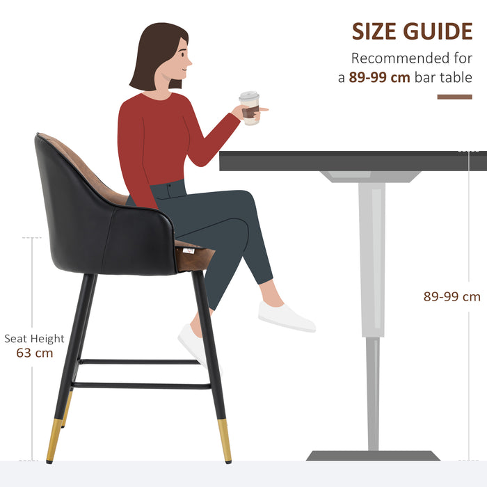 Experience unmatched comfort as you settle into the plush, padded seats of these bar stools. The curved backs and armrests embrace your body's natural contours, while the smooth faux leather upholstery provides a gentle, tactile sensation for you and your guests.