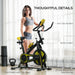 Our vibrant yellow indoor cycling bike is constructed from a robust combination of steel and ABS, built to endure and support up to 120kg. With an expansive seat and various settings for handlebar height, every rider can find their optimal riding posture.