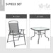 Discover the perfect blend of style and practicality with this elegant five-piece dining ensemble, ideally suited for outdoor feasts and relaxation. Embrace the joys of dining al fresco with family and friends, or indulging in peaceful solitude amidst nature’s serenity.