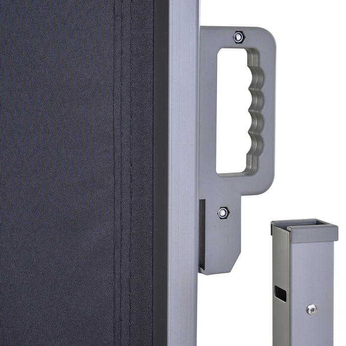 This side awning is designed to cater to different spaces, extending up to 600cm in length when fully utilized, and retracting to a sleek, compact size when not in use, boasting dimensions of 160H x 36L x 10W cm while retracted. It's perfect for creating that extra bit of usable outdoor space when needed.