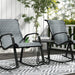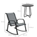 Accompanying this set is a circular side table, an epitome of functionality and elegance. Whether it's for resting your favorite beverage or a delightful brunch, this table, featuring a sleek, easy-to-maintain powder-coated surface, becomes the perfect companion to your leisurely rocking experience.