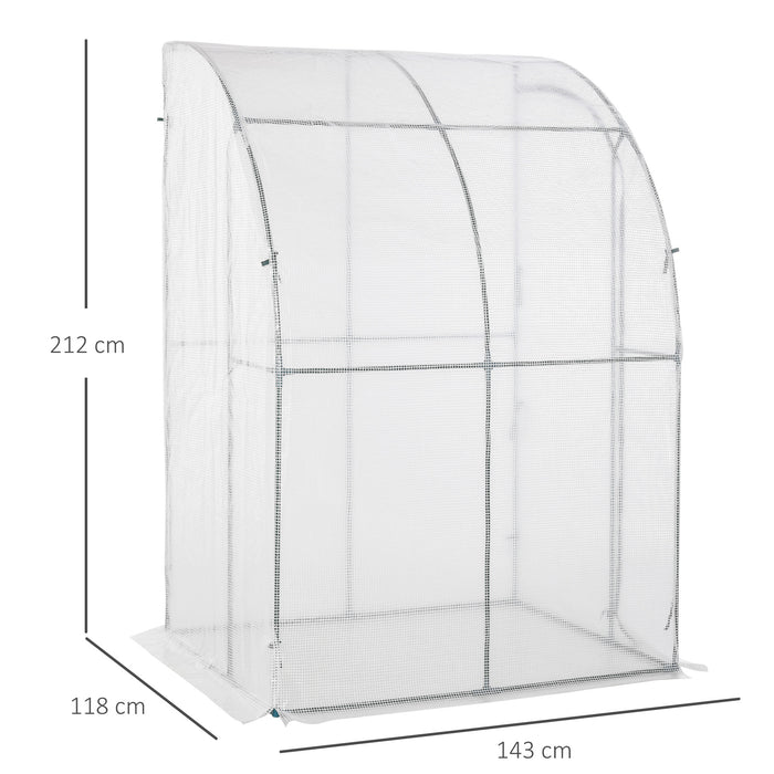 Built with resilience in mind, the structure of this greenhouse is supported by a robust steel frame, guaranteeing that it remains steadfast and secure against a wall or garage even in varied conditions. Drawing on dimensions of 212H x 143L x 118W cm for ample height and space, it brings together form and function seamlessly.