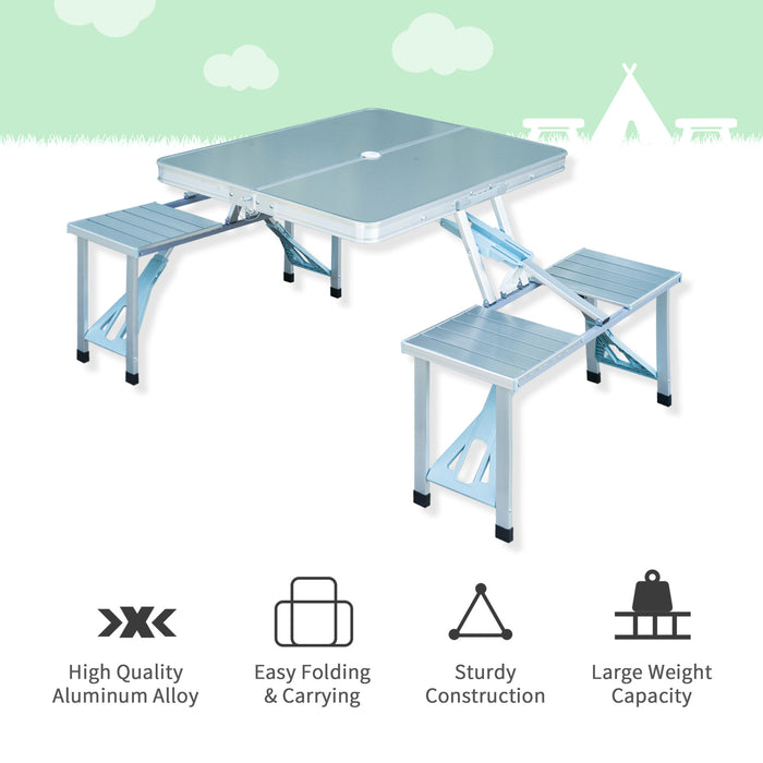 Welcome to the ultimate outdoor companion—your new go-to for picnics, camping, and tailgate parties! This sleek folding picnic table with integrated seating is designed to elevate your outdoor fun. Whether you're playing games, enjoying a meal, or setting up a stall at the market, this table's blend of style and functionality provides the perfect space for various activities.
