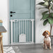 The gate boasts an innovative double-locking system that allows for easy adult access while preventing pets from escaping. A top-slide button mechanism ensures that the door stays firmly closed with a simple slide-and-lift action, which adults can conveniently operate with one hand.