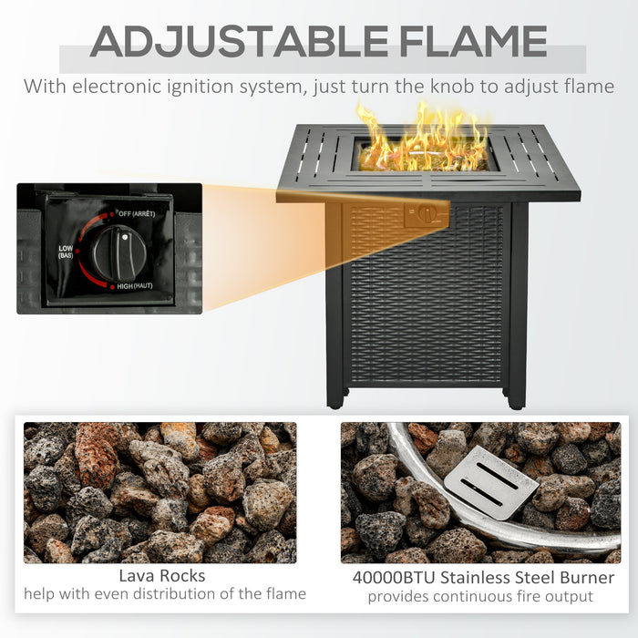 Defined by its strong metal frame and timeless rattan design, this fire pit table is an excellent choice for any outdoor area. It's built for endurance and designed to complement your space, no matter where you choose to relax and entertain.