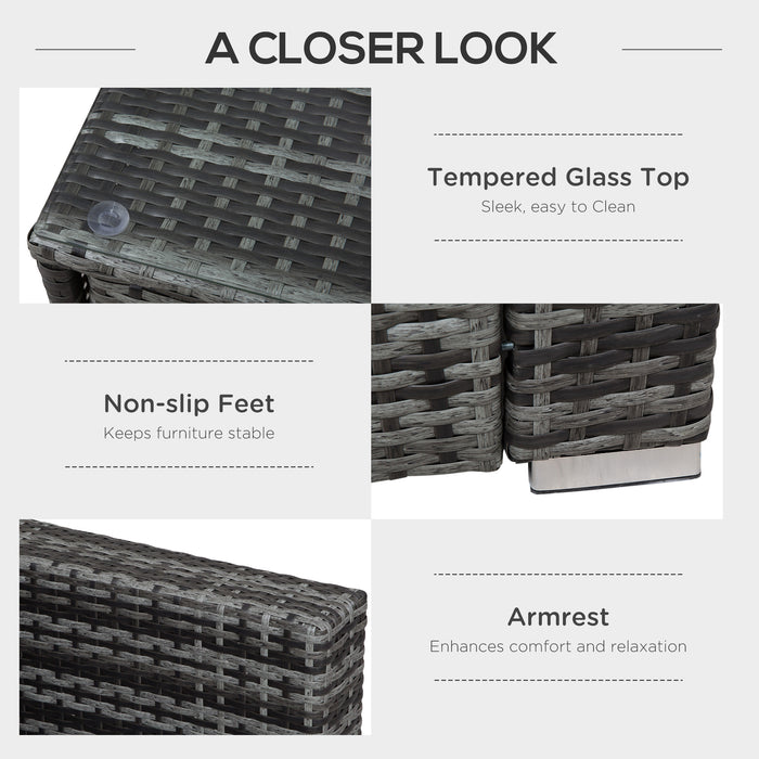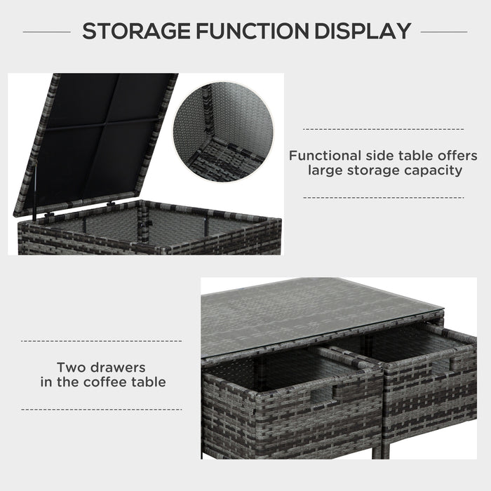 Transform your outdoor space into a haven of comfort and style with our Luxurious Rattan Lounge Set. This exquisite ensemble is your new focal point for relaxation, socializing, and enjoying the ambiance of your garden or patio. The Lounge Set is carefully crafted to seamlessly blend elegance with functionality, featuring two spacious two-seater sofas, an innovative storage table, and a versatile coffee table.