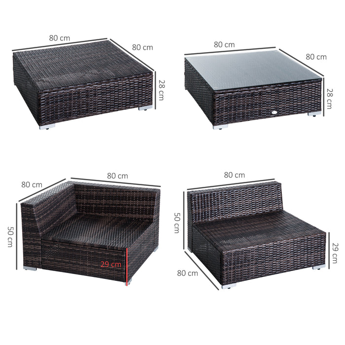 Our outdoor lounge set boasts a modern, reconfigurable design, allowing you to arrange it to best fit your space and needs. The sleek, rattan-style finish offers the beauty of traditional wicker without the maintenance, crafted from high-quality, weather-resistant materials that are both robust and lightweight.