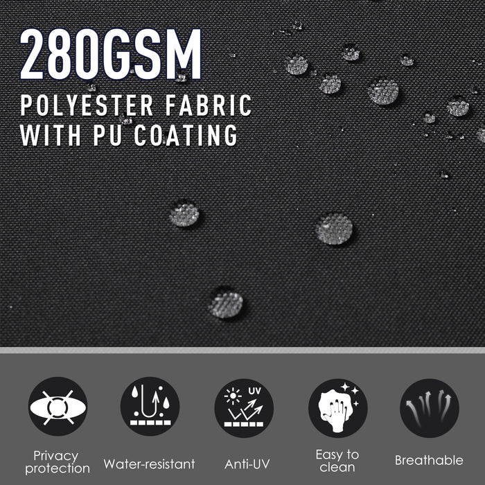The centerpiece of our retractable screen is its dense and robust 280gsm fabric, which boasts a resilient PU coating. This high-grade fabric ensures that whether the sun is beating down or the wind is picking up, you're comfortably shielded. Our sophisticated double canopy design not only provides extensive coverage but also proves its durability in various weather conditions.