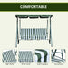 Introducing an exuberant touch to any garden or patio area, this charming swing chair offers both style and comfort. Its appealing blue and white stripes infuse a nautical vibe, making it the perfect accent for enjoying lazy afternoons outside. With a generously sized seating area, this swing chair invites relaxation, whether you're soaking up solitude or sharing the moment with companions.