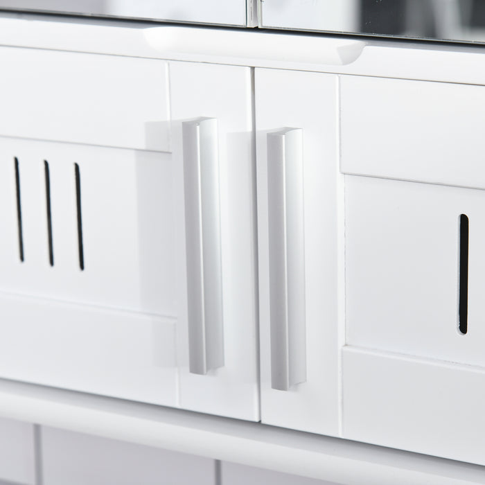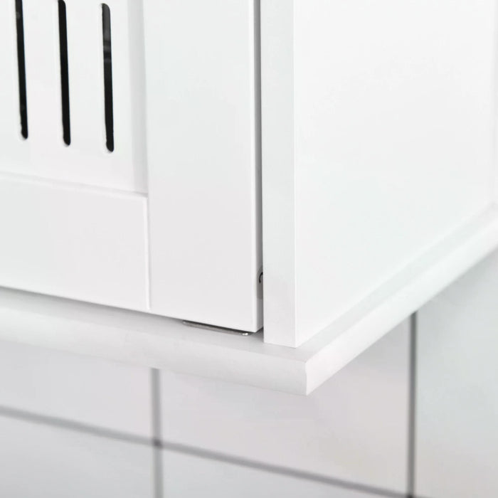 Built to last, the cabinet's MDF construction withstands the test of time, adorned with a smooth painted finish for effortless cleaning. The chic white color magnifies its sophistication, blending seamlessly with any décor.