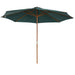 Wooden Patio Umbrella 3m - Pulley-Operated Garden Parasol with 8 Ribs in Dark Green - Ideal for Outdoor Shade and Relaxation