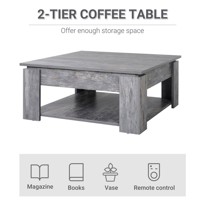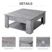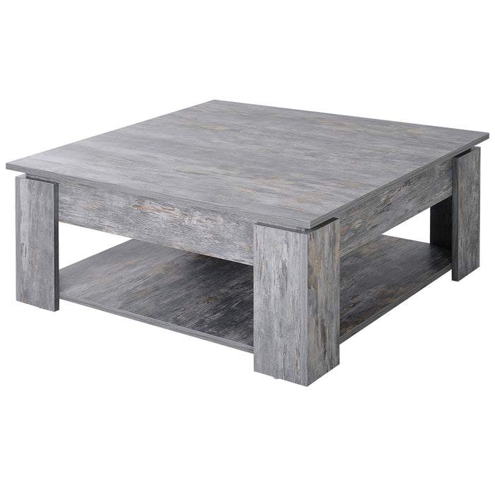 Embrace the blend of functionality and effortless style with our coffee table, sporting dimensions of 80L x 80W x 36H cm. The thoughtful design provides a convenient lower shelf positioned 20.5 cm below the top, optimizing space for your storage needs.
