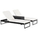 The ensemble includes two elegantly crafted sun loungers and a chic side table, allowing you to unwind alone or share a restful day with a companion. Revel in the comfort of the loungers, designed with multiple reclining positions, ensuring everyone finds their perfect angle of relaxation. The back can be easily adjusted to five distinct angles, putting you in full control over your lounging experience.