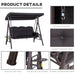 The combination of a black canopy with a brown frame seamlessly complements any outdoor decor scheme, while the quality of the metal and polyester materials used in the construction confirms the swing chair's lasting appeal. Sink into the included cushion, perfectly sized to match the seat, and drift away into serenity.