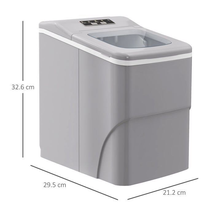 Measuring a tidy 32.6cm in height, 21.2cm in length, and 29.5cm in width, this ice maker boasts a sleek design that fits into any setting. It operates on a standard voltage of 220V-240V/50HZ, with an energy-efficient power rating of 90W to make ice, and 130W for ice melting.