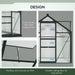 Ready to weather any storm, the greenhouse can bear up to 40kg/m² of snow. Its aluminium frame fortifies its stand against rust and tumultuous weather, while the polycarbonate panels stand transparent and tough - creating a secure atmosphere that fosters growth. Ground stakes are provided for additional stability to anchor your horticultural haven.