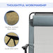 Upright: 62W x 70D x 109H cm, Folded: 99L x 62W x 10H cm, Seat: 47W x 41D x 43H cm, Back: 72L x 47H cm, Capacity: 120kg. The loungers come in a sleek grey color that blends seamlessly with any outdoor decor, assuring both style and functionality.
