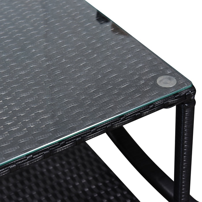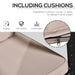 The focal point of this set is the finely woven PE rattan, which exudes a contemporary yet timeless appeal. The intricately crafted material provides lasting endurance, gracefully weathering the elements while retaining its beautiful appearance. Each piece of the set is meticulously reinforced with a robust metal framework, ensuring stability and an impressive capacity to bear weight effortlessly.