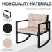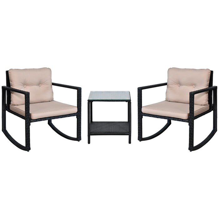 Experience tranquil days and restful nights with our lovely outdoor set. As you rock gently in the plush armchairs, let the ambiance of your refined space envelope you, providing the perfect setting for relaxation and intimate gatherings. Enjoy the marriage of functionality and style with our captivating outdoor collection.