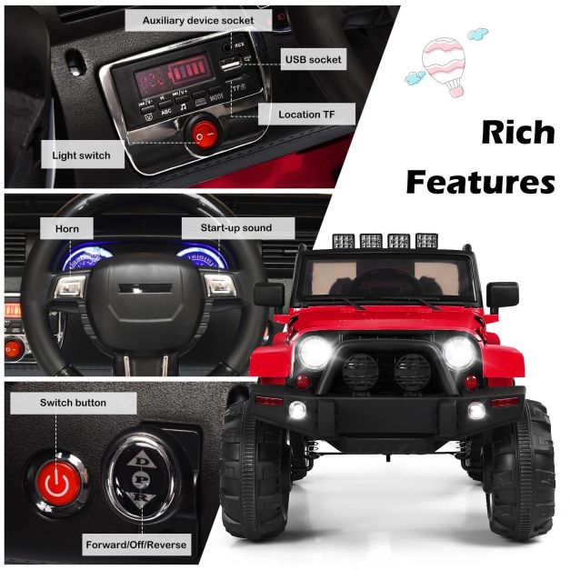 No adventure is complete without a soundtrack! Our electric truck is more than just a ride; it's a mobile entertainment unit, equipped with an integrated MP3 player, AUX port, and USB and TF card slots to keep your children enthralled with their favorite melodies. Accompanying the musical interludes are vibrant headlights and a beeping horn, elevating the journey with sensory excitement.