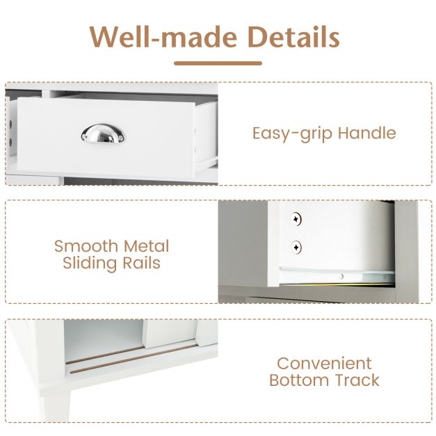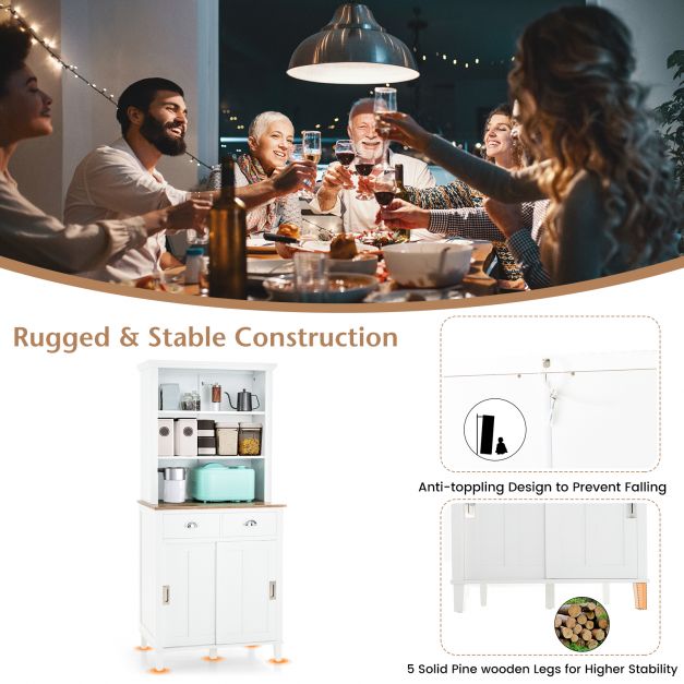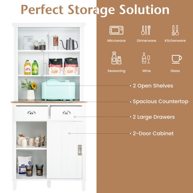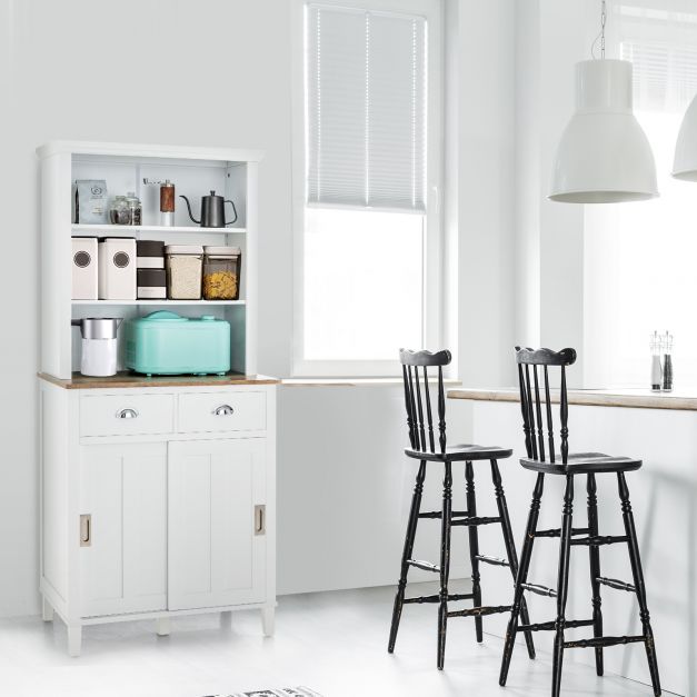 This freestanding cabinet is not simply for storage; it doubles as a tasteful stage for a microwave, an elegant coffee station, or an artful display. Its pristine white finish and subtle design lines allow for seamless integration with any decor style, proving its worth beyond mere functionality, whether in your dining space, bedroom, or lounge area.